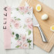 Pink Flowers, Roses, Watercolor Flowers, Your Name Tea Towel