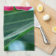 The original photograph by MaeFlowers on this brightly coloured Kitchen Towel features pink flowers against a background of green leaves, with a touch of light blue sky showing through. The flowers have five wide petals which flare out and are rounded at the ends. Each flower has a very pale yellow centre in a cone shape which blends into pink tendrils at the outer edges. Bring a touch of the garden indoors with this towel.