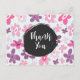 Pink Flowers Whimsical Retro Pattern Thank You Postcard