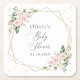 Pink Flowers, White Flowers, Greenery, Baby Shower Square Paper Coaster