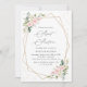 Invite friends and family in style and set the tone for your special day with this charming birthday invitation. Design features pink and white watercolor flowers, greenery, gold confetti and gold frame on white background.