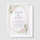 Invite friends and family in style and set the tone for your special day with this charming save the date card. Design features pink and white watercolor flowers, greenery, gold confetti and gold frame.