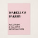 Give your customers up to date allergen and calorie information about your food products with these customisable pink product cards. Each featuring your company name and a QR code on the back that links the customer directly to your allergen/ calorie webpage. Generate a brand new QR code using the "personalise this template" option on the product page. Add the URL to your allergen webpage in the box provided and a brand new QR code will appear on your design that links to your URL.