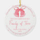 Celebrate your first Christmas as a family of three with this charming ornament, featuring a festive winter design. The soft pink hues and delicate footprints create a heartwarming keepsake that captures this special moment. This ornament includes space for personalisation to make it uniquely yours, allowing you to add names and the year for a personal touch. Perfect for hanging on your tree or gifting to loved ones, it's a beautiful reminder of new beginnings. Order today to add a festive touch