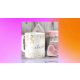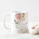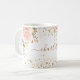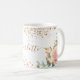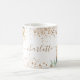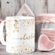 A chic white background. Decorated with blush pink florals, flowers (roses)and green watercolored eucalyptus leaves, sprigs, greenery and faux gold sprigs. Golden sparkles. Personalise and add a name. The name is written with a modern hand lettered style script with swashes.