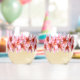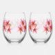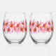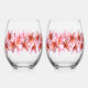 Pink frangipani decorated drink glasses. Perfect for a bridal shower or any pre-wedding party or day-of reception. Realistic pink Hawaiian plumeria blooms wrap around stemless wine glasses.