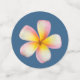 Pink Frangipani Plumeria Flowers & Heart on Blue Confetti