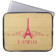 Elegant and chic French Flourish Laptop Sleeve featuring a faux woodgrain look background and an Eiffel Tower design in magenta adorned with cascades of stylish swirls. This girly and trendy design is easy to customise with the personalised text of your choosing. Click "Customise It" to find more personalisation options.
