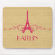 Elegant and chic French Flourish Mousepad featuring a faux woodgrain look background and an Eiffel Tower design in magenta adorned with cascades of stylish swirls. This girly and trendy design is easy to customise with the personalised text of your choosing. Click "Customise It" to find more personalisation options.