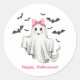Pink Friendly Girl Ghost with Bats Flying Classic Round Sticker