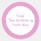 Painting of a pink circle frame with a flame like edge on the inside, with a placeholder to add a custom message or cook's name, printed on stickers.
