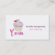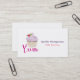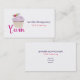 Business cards with the text Yum! Designed with an illustration of a yummy cupcake with pink swirls and a berry with leaves nestled in the frosting.