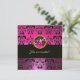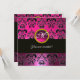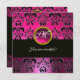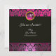 PINK FUCHSIA BLACK DAMASK MONOGRAM, amethyst Invitation