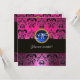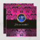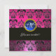 PINK FUCHSIA BLACK DAMASK MONOGRAM, blue sapphire Invitation