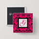 PINK FUCHSIA DAMASK WHITE SQUARE MONOGRAM 15 CM SQUARE BADGE