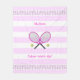 This blanket has a softly feminine design featuring crossed tennis rackets in pink and is ready for you to personalise with a name. The accompanying caption is simply "Future tennis star" or you can customise this too. The background has broad stripes in colours of pale pink and white, and there are further patterns top and bottom of rows of tennis rackets.