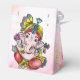 Pink Ganesha Indian wedding thank you favours favour gift box, cute Ganesha, pink background, bells, pink lotus flowers, maroon font.