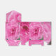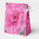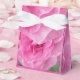 The pink garden beauty on this ribbon Favour Box is an original photograph by MaeFlowers of a beautiful pink garden rose. It's a closeup view, showing the flower open wide, with all of its petals in ruffled layers. The intense pink colour becomes deeper in the centre of this lush bloom. In the corners of the photo, bits of the flower's surrounding green leaves can be seen. This is a design for lovers of the colour pink.