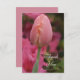 Write a warm message of thanks and gratitude for gifts received after a March, April or May spring engagement party, bridal shower or wedding with the pretty Pink Garden Tulip Flat Thank You Note. These elegant custom custom flowery thank you notes features a natural floral photograph of a pink tulip flower blossom with tiny water droplets and a blurred green and pink garden background.