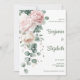 Pink garland peonies eucalyptus leaf Wedding Invitation