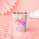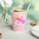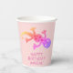 Pink Gecko Lizard Drawing Kids Birthday Paper Cups. Gecko birthday paper cups for kids. A cute pink and rainbow coloured gecko. Custom paper cups with a Happy Birthday text and a child`s name - add your name and text. Great for a girl`s birthday party.
