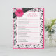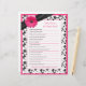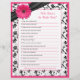You can personalise the name on this hot pink (fuchsia) gerbera (gerber) daisy, black and white floral and ribbon personalised bridal shower "who knows the bride best" game. You can change the text using the personalise options. The colours on this bridal shower game are hot pink, black and white... perfect for a spring or summer wedding shower.