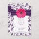 Pink Gerber Daisy Purple Damask Wedding Reply Card