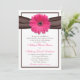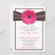 Pink Gerbera Daisy Brown Ribbon Wedding Invitation