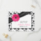 The text on this pink gerber daisy black and white damask wedding RSVP or reply postcard is fully customisable. You can change it using the personalise option. For more extensive changes to the postcard, including changing the font, font colour, font size, or text placement, choose the customise option. This RSVP postcard can easily be turned into a save the date postcard. Just change the text.