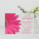 Pink Gerbera Daisy Grey Grey Wedding Invitation