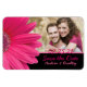 The text and engagement photo on this black and pink gerbera daisy photo wedding save the date or favour magnet are fully customisable. You can change them both using "personalise it". For more extensive changes to the magnet, including changing the font, font colour, font size, or text and/or photo placement, use the "customise it" option. The colours on this pink gerber daisy magnet are hot pink and black. This elegant design is perfect for a wedding in the spring, summer, or winter.