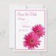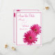 The text on this pink gerbera daisy save the date card is fully customisable. To change it, use the personalise options. To change the font, font colour, or the background colour, you can use the customise option. The colours for this save the date card are pink and white. You can easily change the background colour to whatever you want.