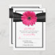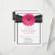 The text and background colour on this pink gerbera daisy and black satin ribbon response or rsvp card is fully customisable. To change the text, use the personalise option. For more extensive text changes, such as changes to the font, font colour, font size, text layout or background colour, use the customise option. The colours on this card are pink, black, and white. This card is currently setup to print on the linen paper type, but would look nice on any of the other paper types. Some paper type changes will change the background colour. This card would also work well as a direction, reception, or accommodation card. All you need to do is change the text. This product is part of a themed wedding stationery set that includes RSVP cards, save the date cards, thank you cards, stickers, magnets, wedding programs, stationery, table cards, and place cards.