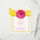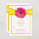 The text and background colour on this pink gerbera daisy and yellow ribbon response or rsvp card is fully customisable. To change the text, use the personalise option. For more extensive text changes, such as changes to the font, font colour, font size, text layout or background colour, use the customise option. The colours on this card are yellow, pink, and white. This card is currently setup to print on the linen paper type, but would look nice on any of the other paper types. NOTE: We don't suggest using the basic paper for response cards, as the basic paper is semi-glossy on the front making your RSVP cards hard to write on. To change the paper type, click on the invitation options tab. This card would also work well as a direction, reception, or accommodation card. All you need to do is change the text.