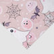 A whimsical Halloween-themed seamless pattern tissue paper set on a soft pink background, featuring adorable pink ghosts with playful expressions and accessories, paired with white pumpkins, black spiderwebs, and purple and black bats. This charming design blends spooky fun with pastel cuteness—perfect for lighthearted Halloween vibes, kawaii style lovers, and festive seasonal themes.