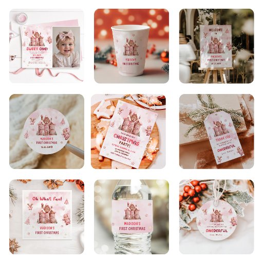 Pink Gingerbread House Christmas First Birthday Paper Plates
