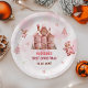 Pink Gingerbread House Christmas First Birthday Paper Plate