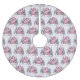 Elevate your festive decorations with this delightful pink village gingerbread house Christmas tree skirt. It showcases a frosty, snow-dusted pink gingerbread house embellished with sweets, a miniature snowman, and encircled by wintry pine trees, all set against a gentle pink backdrop to match your pink decor theme.