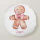 What is cuter than a pink gingerbread person? Not much, is our opinion. This sweet, smiling little gingerbread person, sports a cute pink bow for Christmas. It is from a vintage, watercolor design. We've added an example name, so you can enter one of your choice to personalise this holiday round throw pillow.