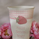 These paper cup are ready to be customised with your own messages with a spot to add a message on the front and on the back. They features a border of pink gingham accented with ripe red strawberries. Your messages appear in coordinating pink lettering.