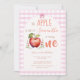 Pink Gingham Apple Watercolor first birthday Invitation