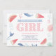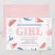 Couples or co-ed girl baby shower invitations with pretty pink gingham and juicy watermelon images