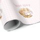 Sweet pink plaid Beatrix Potter graphic with “Baby Love” typography in coordinating pink for the perfect baby shower gift wrap. Soft pink pastel gingham background. Just as sweet as can be for a baby shower gifts.