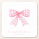 Pink Gingham Bow Ribbon Coquette Personalised Square Paper Coaster