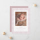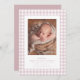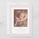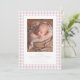 Introduce your new baby with this sweet and simple pink gingham birth announcement. The front of the classic design features a frame of pink and white checks with a single vertical photo along with customisable type and plenty of room for baby's name, birth date, stats and more. The back is a coordinating dusty rose pink with white dots and features room for a second photo. This design is part of the "oh baby" gingham collection by Lea Delaveris Design and is also available in other colours and as a digital birth announcement download. Find coordinating pieces like envelopes, envelope liners, thank you notes and more in the collection.
