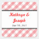 Pink gingham country picnic rustic wedding favour square sticker