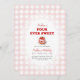 Pink Gingham Four ever Sweet Strawberry Birthday Invitation