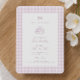 Celebrate in sweet style with this pink gingham girl’s birthday party invitation. Featuring a charming pastel chequered border, elegant typography, and a cute hand-drawn cake illustration, this design is perfect for a little girl’s special day. Fully customisable with your event details, it’s ideal for third birthdays, toddler parties, and other milestone celebrations. The timeless gingham pattern adds a classic touch, making this invitation a keepsake your guests will adore.