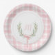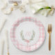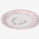 A classic pink gingham watercolor with a laurel crest with bow for initial monogram.