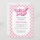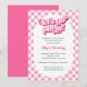 A pink gingham birthday party invitation for girls or young women who love pink. This design features the heading "Let's go party" in a bold, bright font. A certain blonde play doll and her movie inspired this design ;)